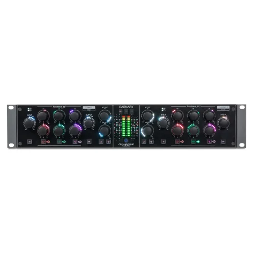 Infused with groundbreaking Harmonic EQ technology, Cranborne Audio’s Carnaby 500 made quite a splash here at Marshall Music. Now, the Cranborne Audio Carnaby HE2 builds on the success of its 500 Series stablemate, expanding the concept with two channels, comprehensive digital control options, and mid-side (M-S) processing capabilities in a 2U, 19-inch rackmount format. Cranborne Audio’s innovative, trademarked technology allows the all-analog Carnaby HE2 to provide all the sound-shaping functionality of a traditional semi-parametric 3-band equalizer while enhancing vocals and instruments with euphonic harmonic saturation. Unlike conventional analog EQs that use phase to equalize audio signals, the Cranborne Audio Carnaby HE2 employs harmonic saturation to boost and cut frequency content.
