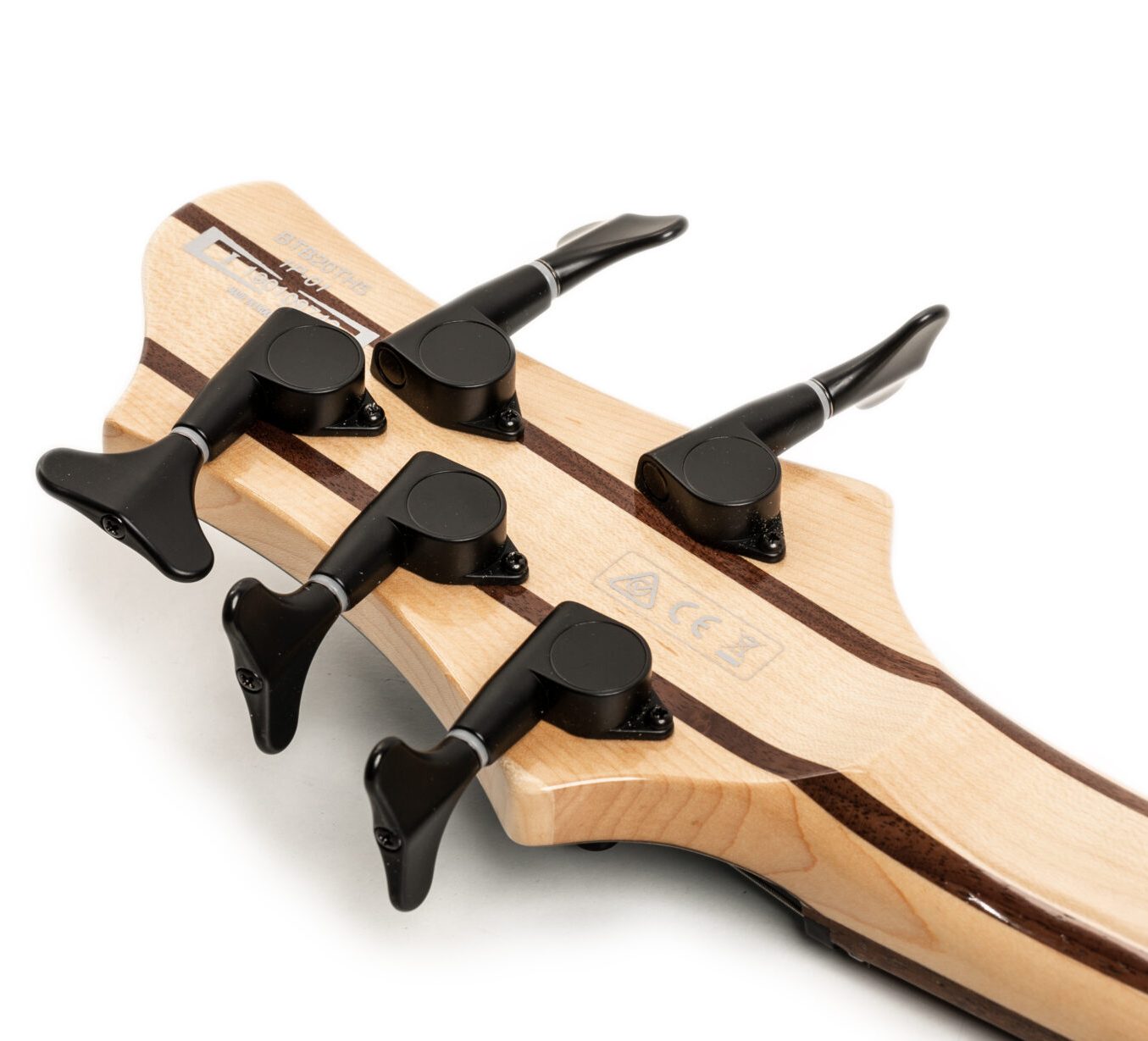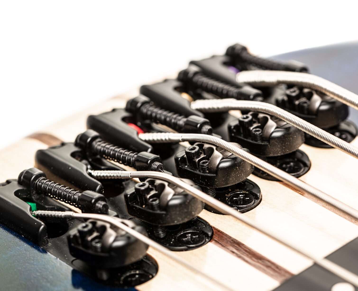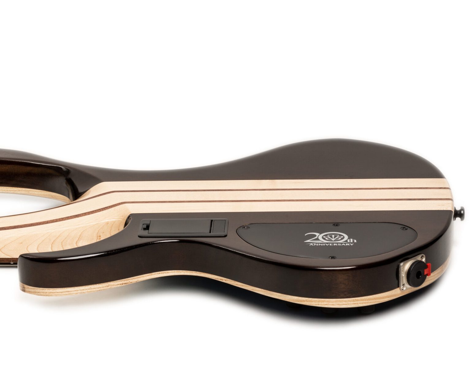 Ibanez specified their excellent Mono-rail 5 bridge for the Limited Edition 20th Anniversary BTB20TH5. Unlike single-body bridges, each Mono-rail V saddle is completely separate from the others. This does two things for you. First, since they aren’t connected, the saddles create minimal sympathetic vibration. This prevents unused strings from ringing. Second, each saddle is double-anchored, allowing energy to transfer efficiently between the string and the body. As a result, bassists here are raving about the BTB20TH5’s astonishing clarity and sustain.