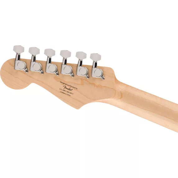 Designed by Fender® in California and an icon of rock & roll, the Debut Collection™ Stratocaster® features a slim “C”-shaped neck profile and a thin, lightweight body for a comfortable playing feel while three single-coil pickups with 5-way switching offer a wide variety of classic Strat® tones. Further details of this model include a tremolo bridge with removable arm for exciting string-bending effects, sealed-gear tuning machines for smooth, accurate tuning action and durable chrome hardware for a premium look.